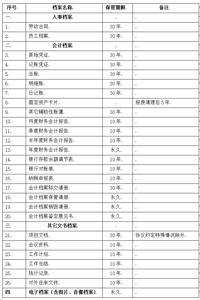 第十 根据相关法律法规规定,基金会档案保管期限分为协议规定、5年、10年、30年及永久(详见“附件:档案保管期限表”)。